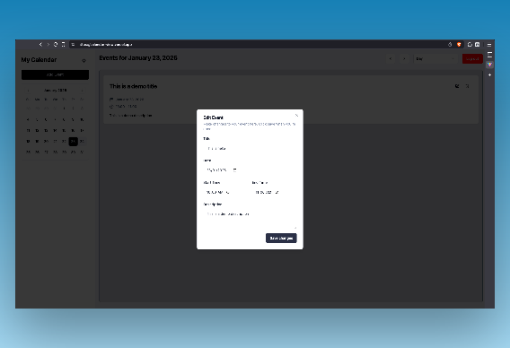 A calender viewing site where users can create their own events and access them as they like with the CRUD functionality