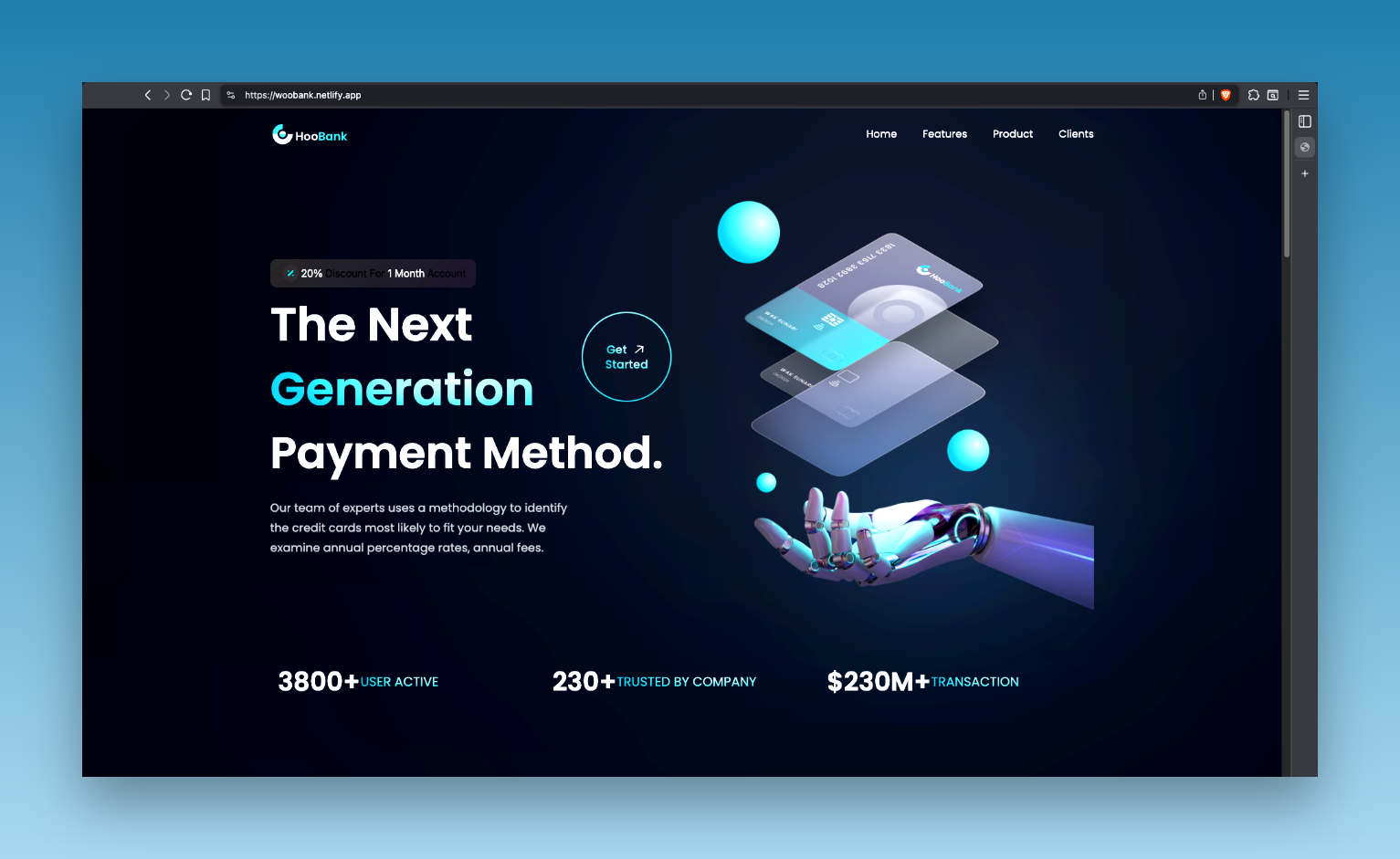 A ui website of a landing page of a bank site build using react and tailwind css